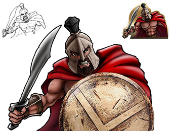 At the end of the day, we found a hi res photo of a Spartan shield, I drew my best version of Leonidas (from 300), and Tara colored him in.