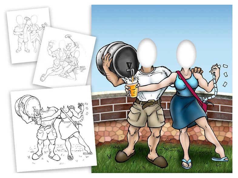 Concept was sketched up and approved in pencil, then finished and colored on computer.
